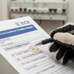 EICR certificates rate your electrical safety by grading them from C1 to F1 codes. Let’s understand them in detail: